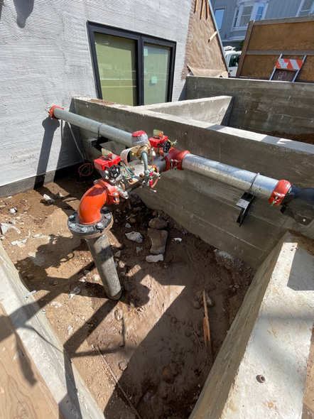 Installation of the underground pipe for the automatic fire sprinkler system.